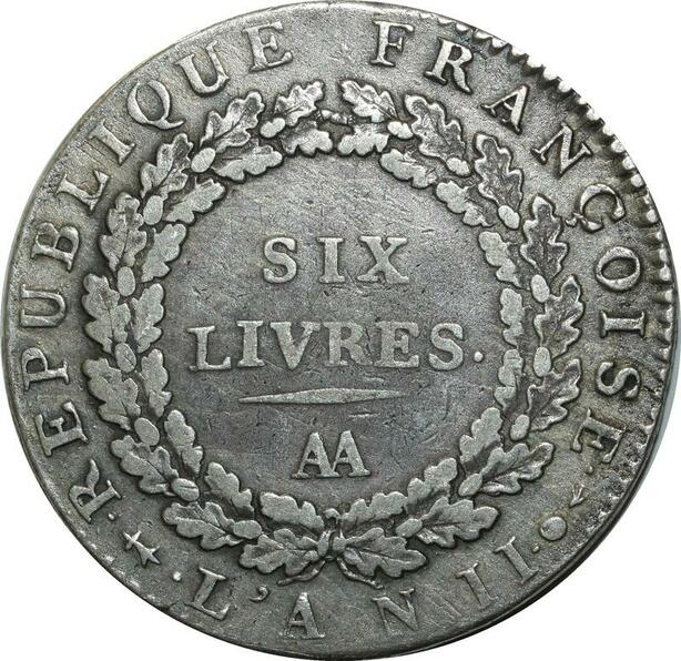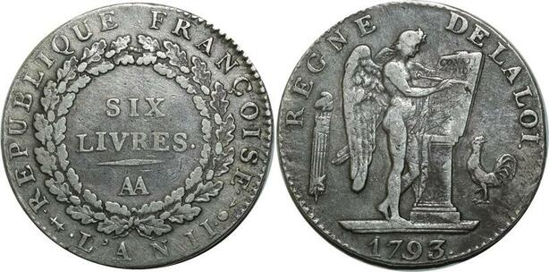 O1585 France Rare Ecu 6 Livres Convention Louis XVI 1793 AA Metz Argent Silver