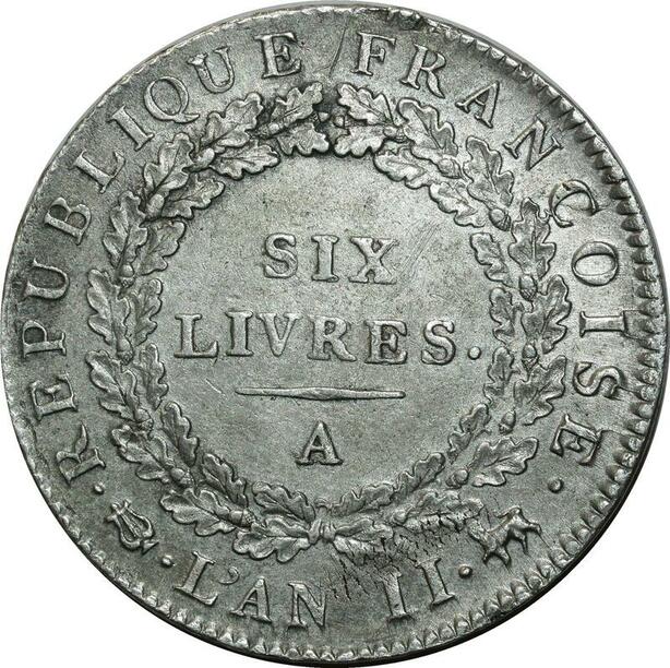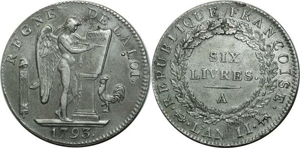 O1587 France Très Rare Ecu 6 Livres Convention Louis XVI 1793 A 2e Argent Silver