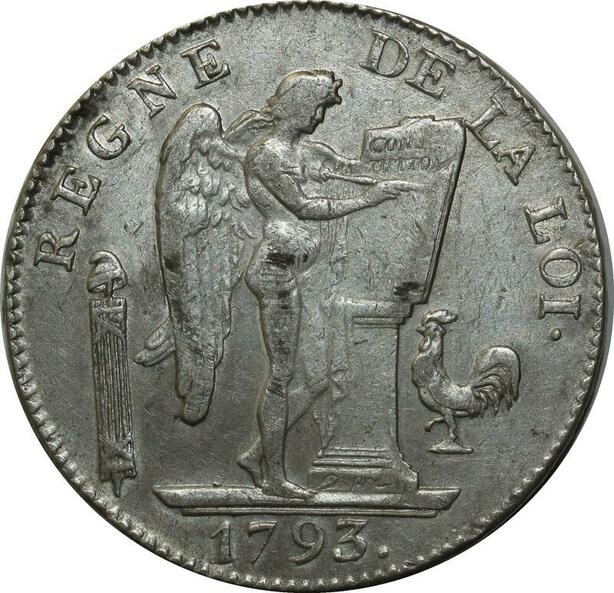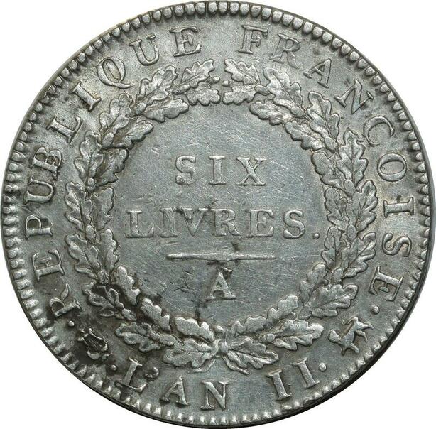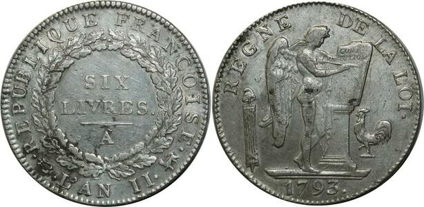 O1592 France Rare Ecu 6 Livres Convention Louis XVI 1793 A Paris Argent Silver