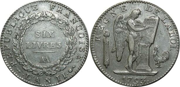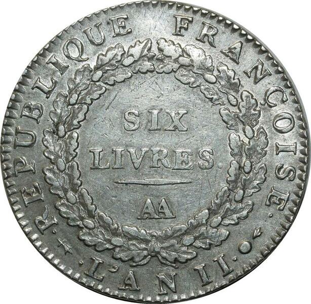 O1598 France Très Rare Ecu 6 Livres Convention Louis XVI 1793 AA Metz Argent TTB+