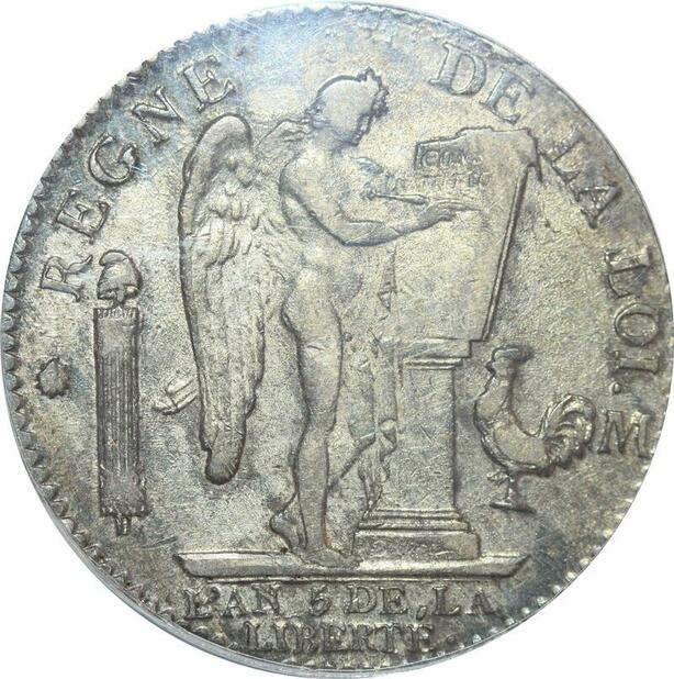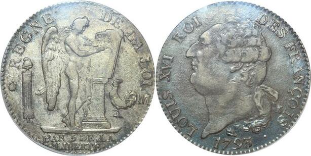 O1605 France Ecu Constitution Louis XVI 1793 M Toulouse Liberte Silver PCGS VF35