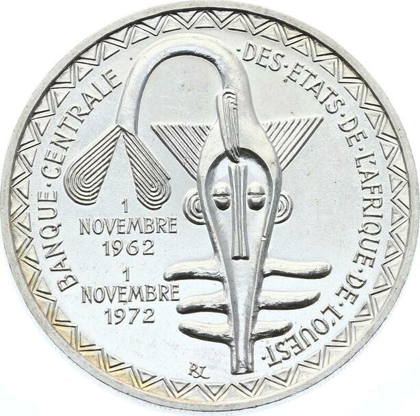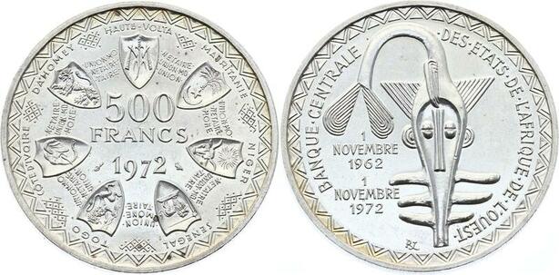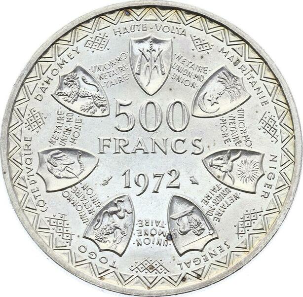 O1681 Afrique de l'Ouest 500 Francs 1972 BU UNC Argent