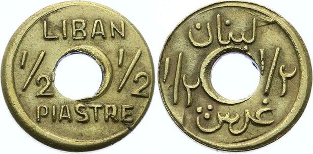 O1687 Liban émission locale 1/2 Piastre laiton s.d. 1942-1945 SUP !!