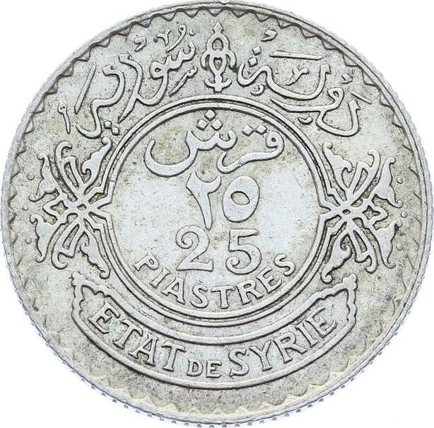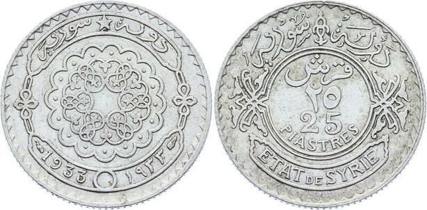 O1714 Scarce Syrie Syria 25 Piastres 1933 Argent Silver AU UNC !!