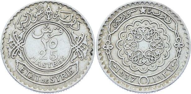 O1715 Syrie Syria 25 Piastres 1937 Argent Silver