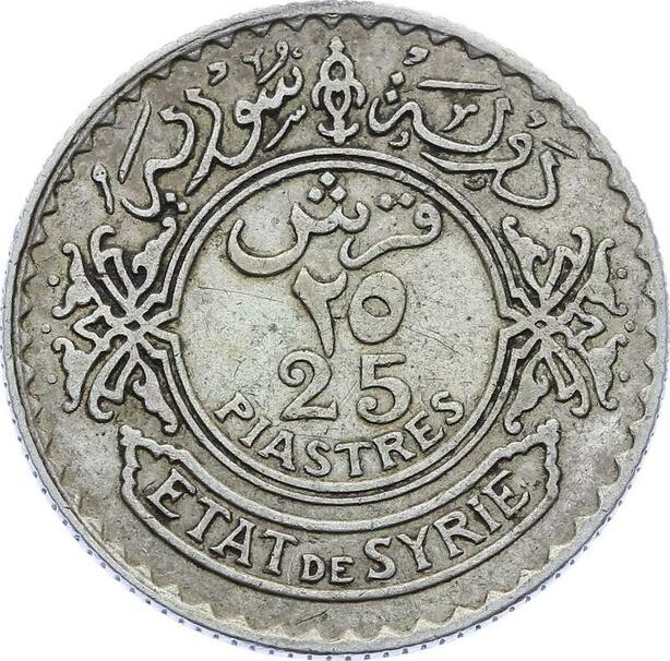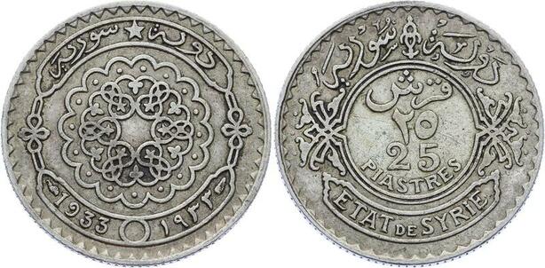 O1716 Syrie Syria 25 Piastres 1933 Argent Silver