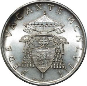 O1811 Italy Vatican Siège vacant 500 Lire 1958 argent BU FDC
