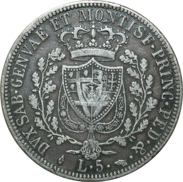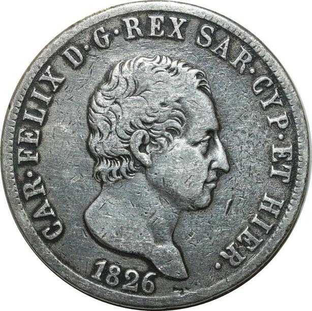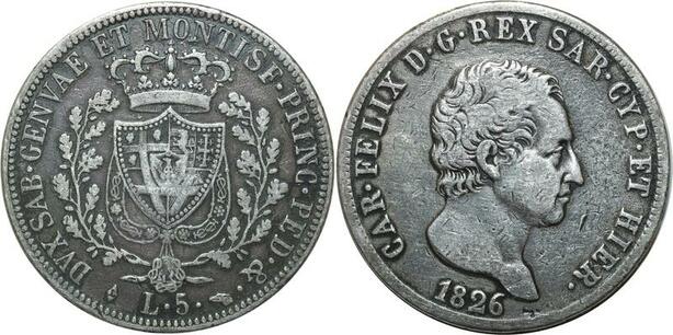 O1831 Italy 5 Lire Charles Felix 1826 L Turin Silver