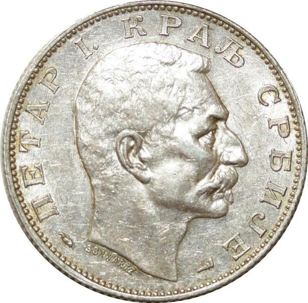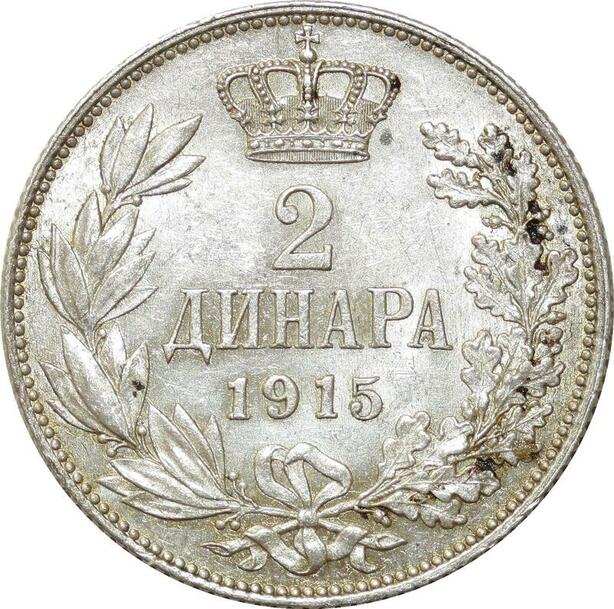 O1843 Serbia Serbie 2 Dinara Peter I 1915 Silver AU !!!