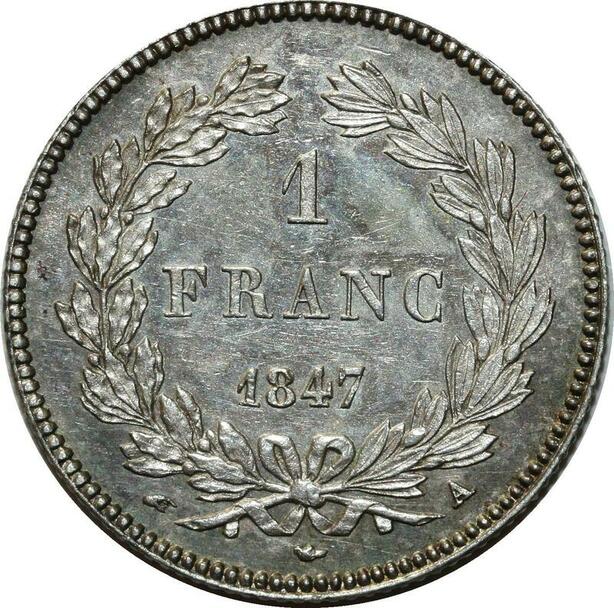 O1860 France Rare 1 Franc Louis-Philippe 1847 A Paris Argent Splendide