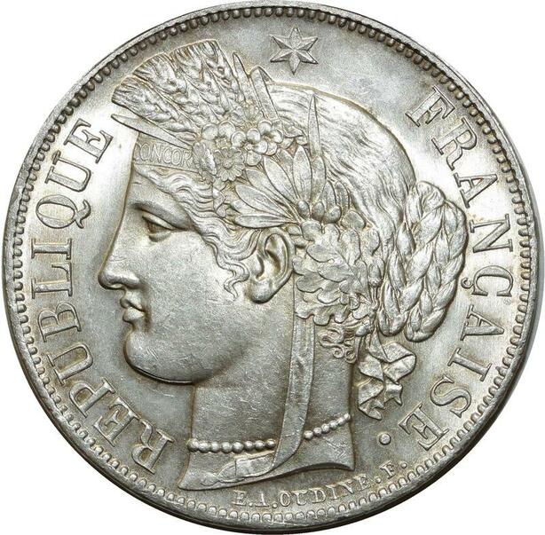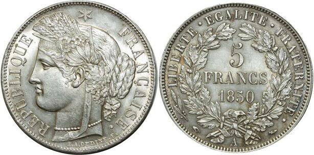 O1863 France Tres Rare 5 Francs Cérès 1850 A Paris Argent Splendide FDC !!! ->MO