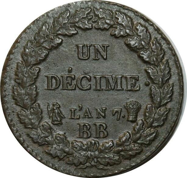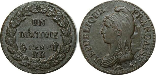 O1871 France Rarissime Un Décime Dupré An 7 BB Strasbourg Coin Choqué PCGS MS62