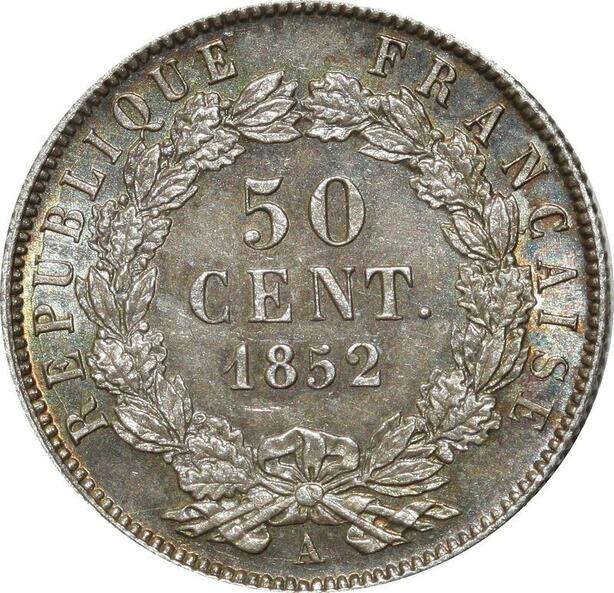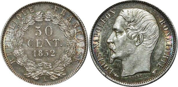 O1872 France Rare 50 Centimes Napoléon III 1852 A Paris Argent FDC PCGS MS64