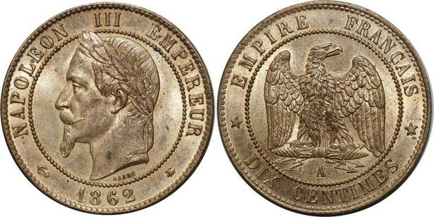 O1876 France Exceptionnelle 10 Centimes Napoléon III 1862 A Paris FDC MS64