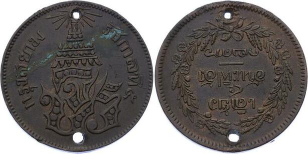 O1923 Rare Thailand 2 Att Rama V 1236 1875