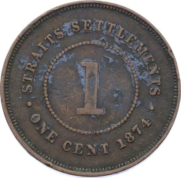 O1938 Singapore Straits Settlements One Cent Victoria 1874