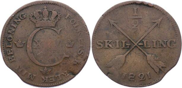 O1969 Sweden 1/2 Skilling Karl XIV 1821