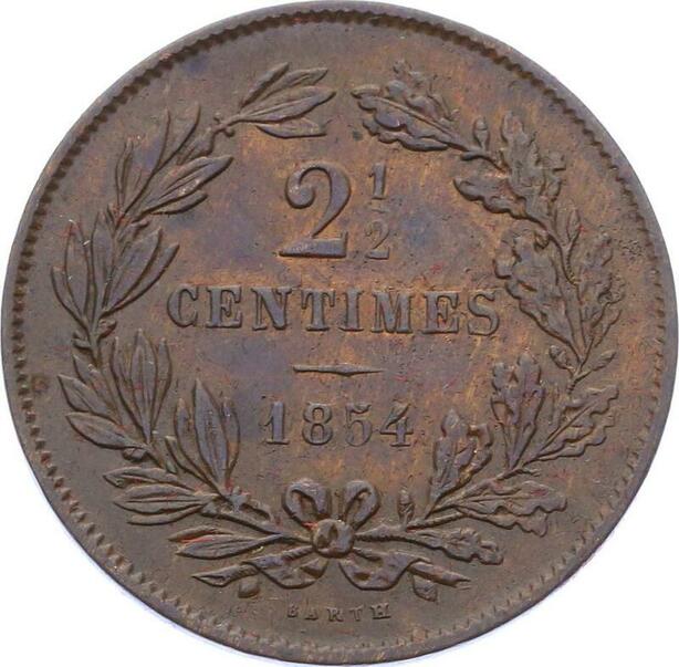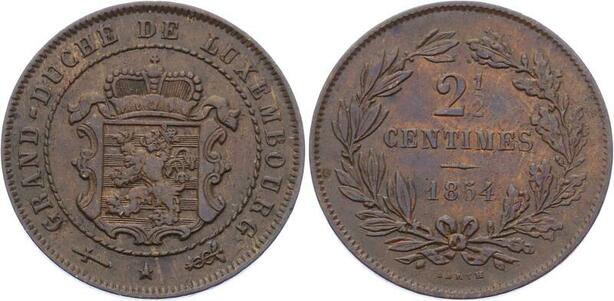 O1988 Scarce !! Luxembourg 2 1/2 Centimes William III 1854