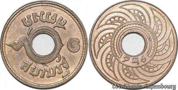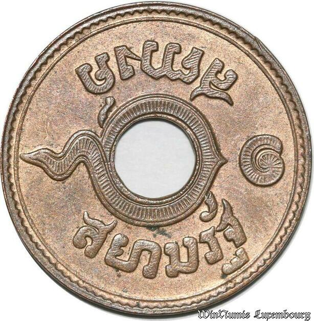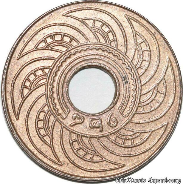 S8027 Thailand Very Rare 1 Satang Rama V 1868-1910 1909 Unapon Chakra 128 UNC