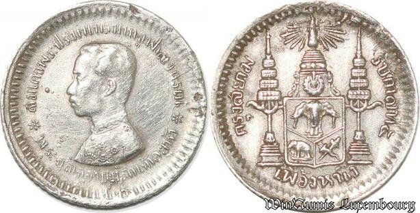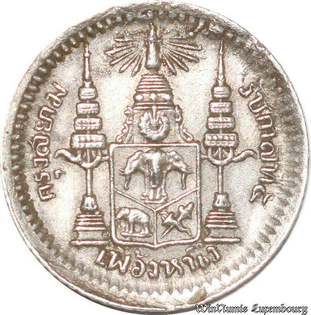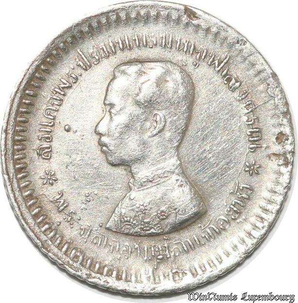S8038 Thailand 1/8 Baht Rama V 1868-1910 1876 1900 Argent Silver AU