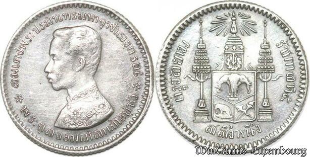 S8040 Thailand 1/4 Baht Rama V 1868-1910 SD 1876 1900 Argent Silver