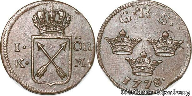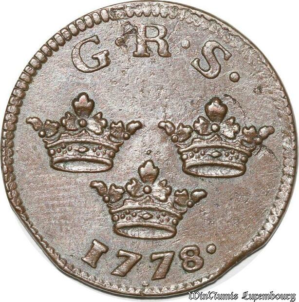 S8068 Sweden 1 Öre Gustav III 1778 Kopparmynt Avesta XF !
