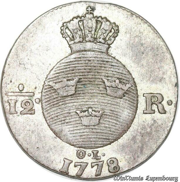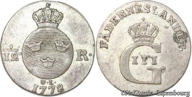 S8074 Sweden 1/12 Riksdaler Gustav III 1778 Stockholm 1771 1792 Silver