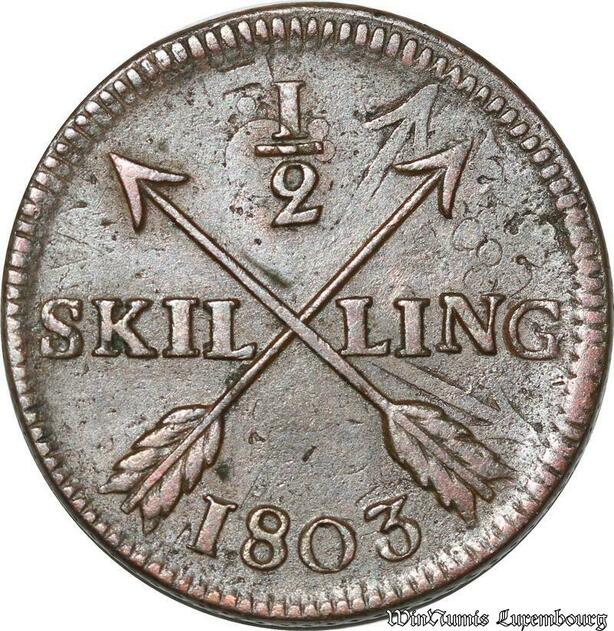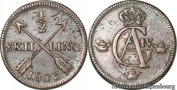 S8084 Rare Sweden 1/2 Skilling Gustav IV 1803