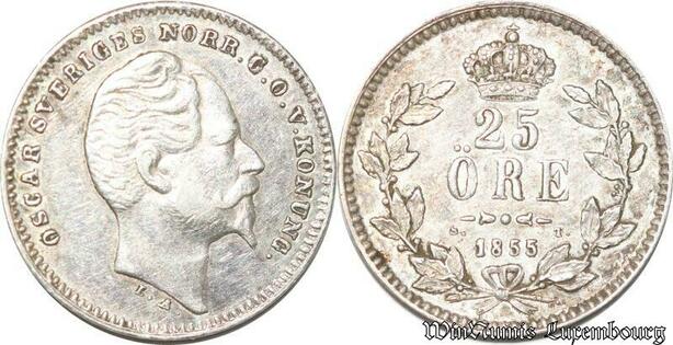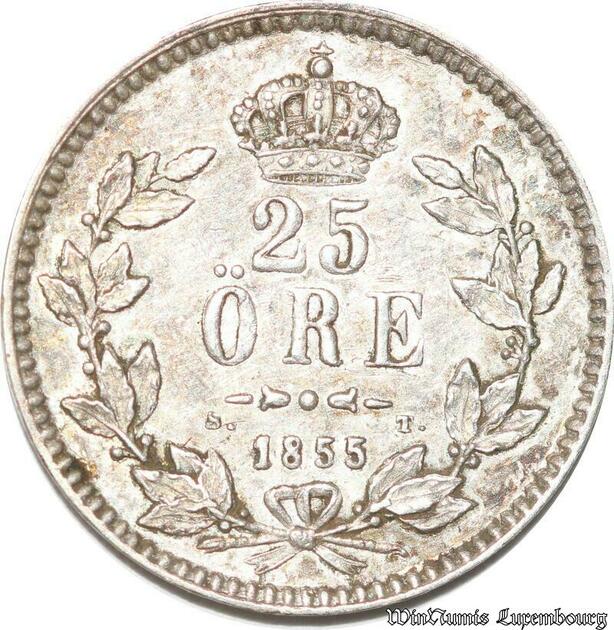 S8104 Sweden 25 Öre Oscar I 1855 Silver ->Make offer