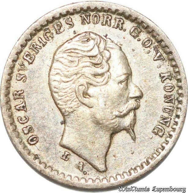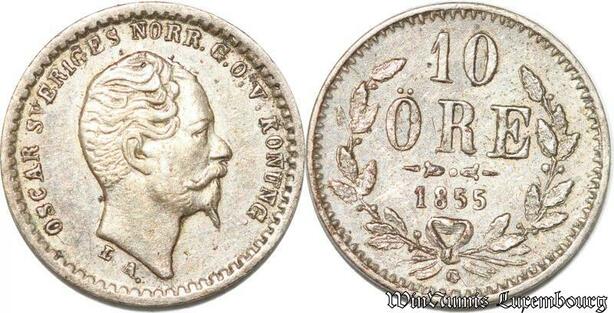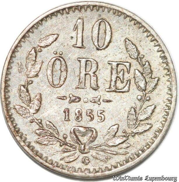 S8105 Sweden 10 Öre Oscar I 1855 G Silver ->Make offer