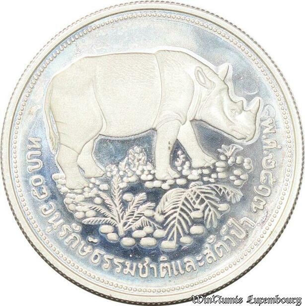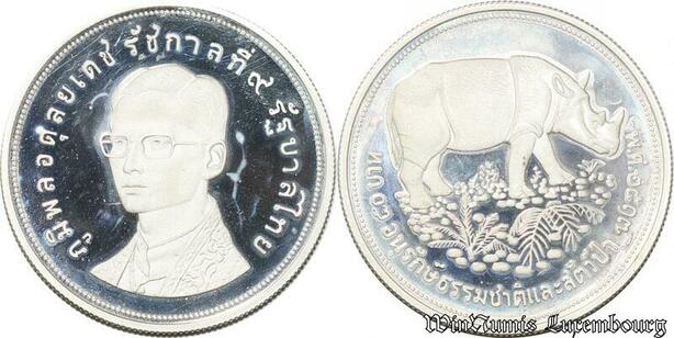 S8119 Very Rare Thailand 50 Baht Rama IX 1974 Argent Silver BE Proof Daim