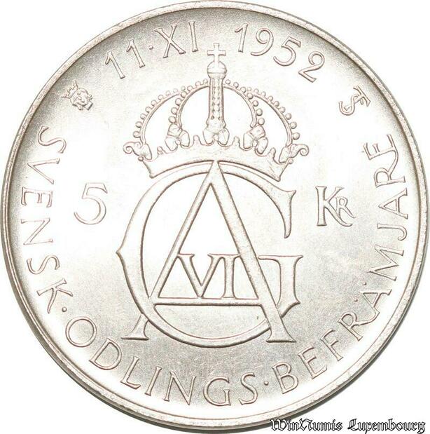 S8126 Sweden 5 Kronor Gustav VI 1952 Argent Silver FDC