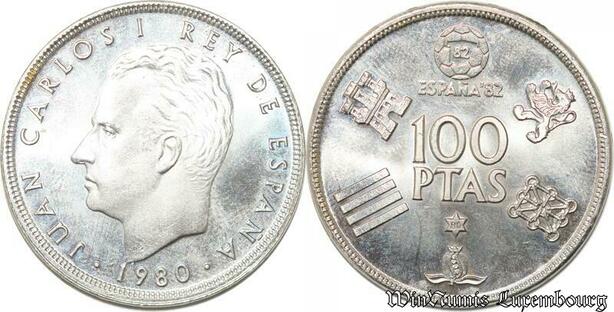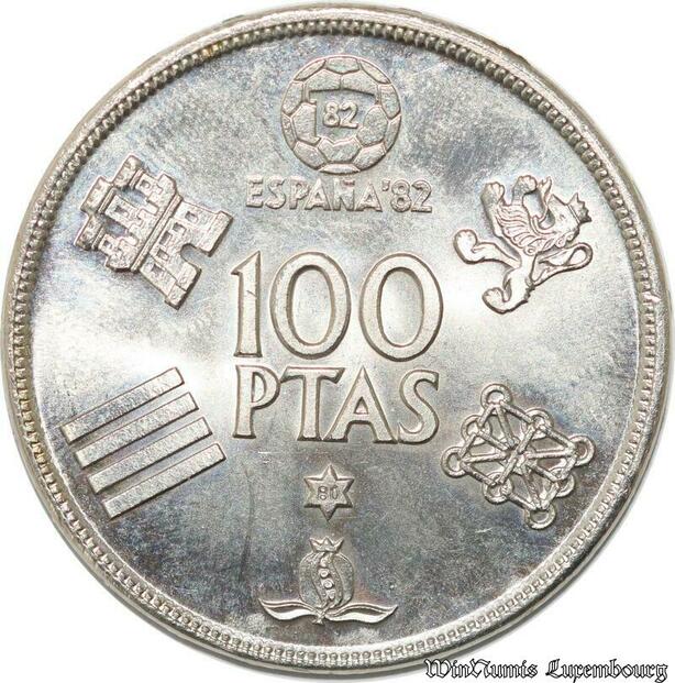 S8142 Spain 100 Pesetas Juan Carlos I 1975 Soccer Football 1982 FDC !