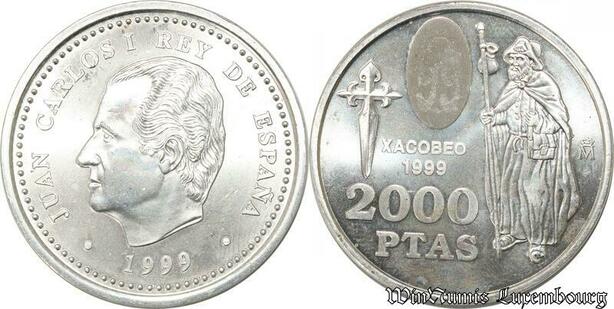 S8148 Spain 2000 Pesetas Juan Carlos I 1975 - 2014 1999 Argent FDC