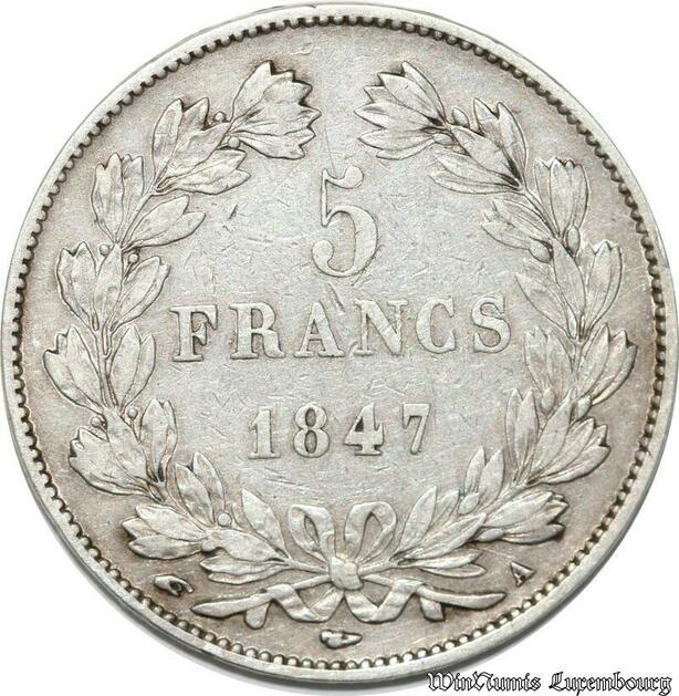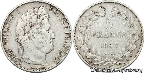S8248 France 5 Francs Louis-Philippe I 1847 A Paris Argent Silver -> Faire Offre