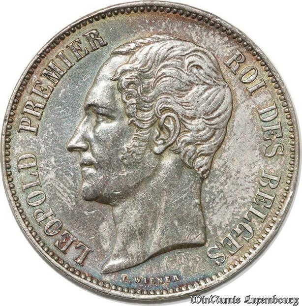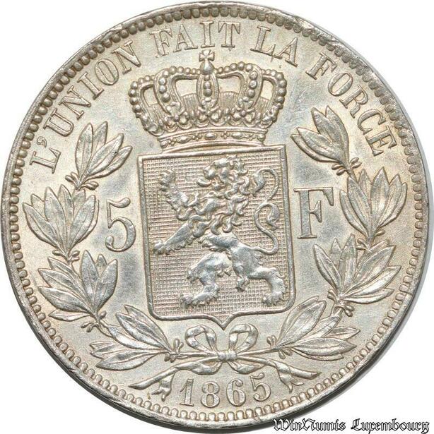 S8476 Rare Belgium 5 Francs Léopold I 1865 Argent Silver TTB++ AU50 55