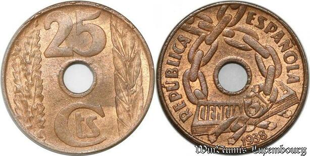 S8498 Espagne 25 Centimos 1938 UNC FDC ! -> Faire Offre