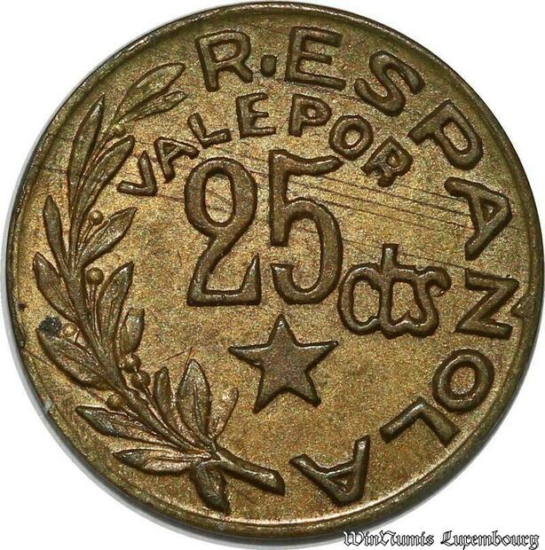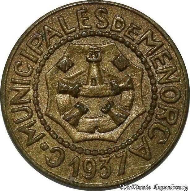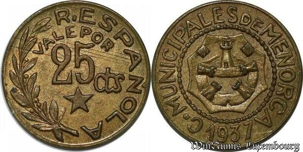 S8501 Espagne 25 Centimos Civil War MENORCA 1937 AU SUP -> Faire Offre
