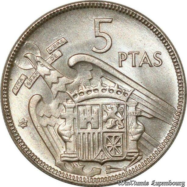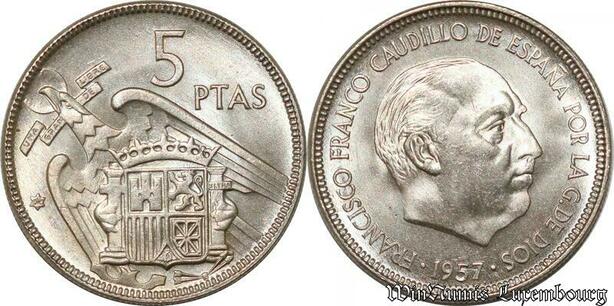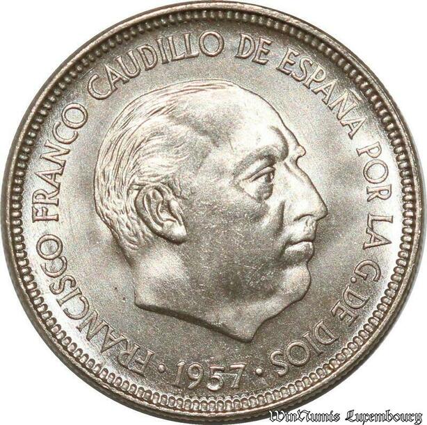 S8504 Espagne 5 Pesetas Francisco Franco Caudillo 1957 62 UNC FDC