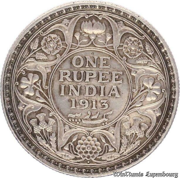 S8534 Inde One Rupee George V 1913 Argenr Silver AU -> Faire Offre