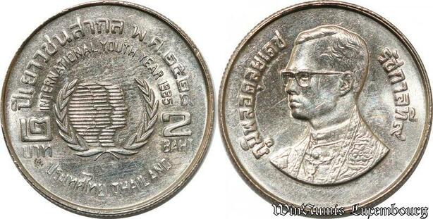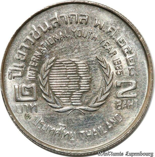S8629 Thailand 2 Baht Rama IX International Year of Youth 2528 1985 UNC -