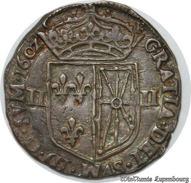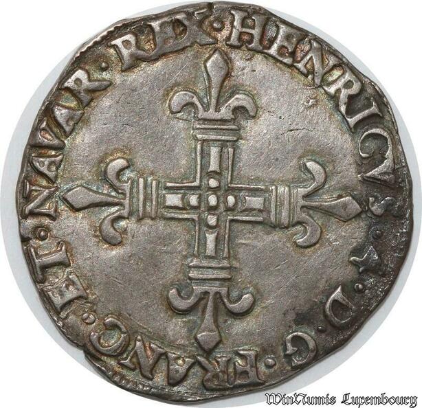 S8655 Rare France 1/4 Ecu de Navarre Henri IV 1602 Saint Palais Argent