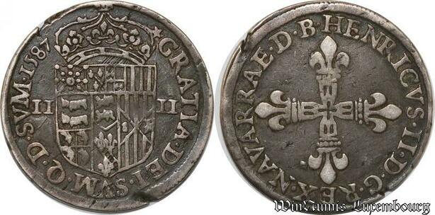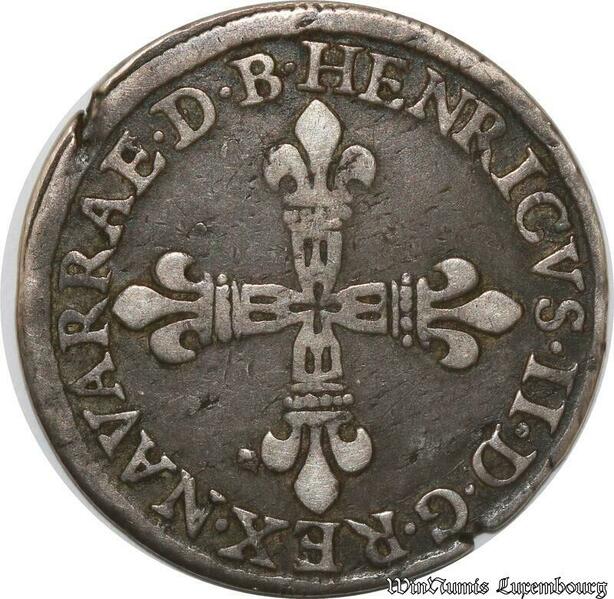 S8658 Rare France 1/4 Quart d'écu Navae Bearn Henri III1587 Pau Silver