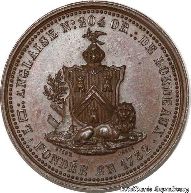 S8752 Rare France Macon Maconnerie Orient Bordeaux Loge anglaise Stern 1860 1879 SUP