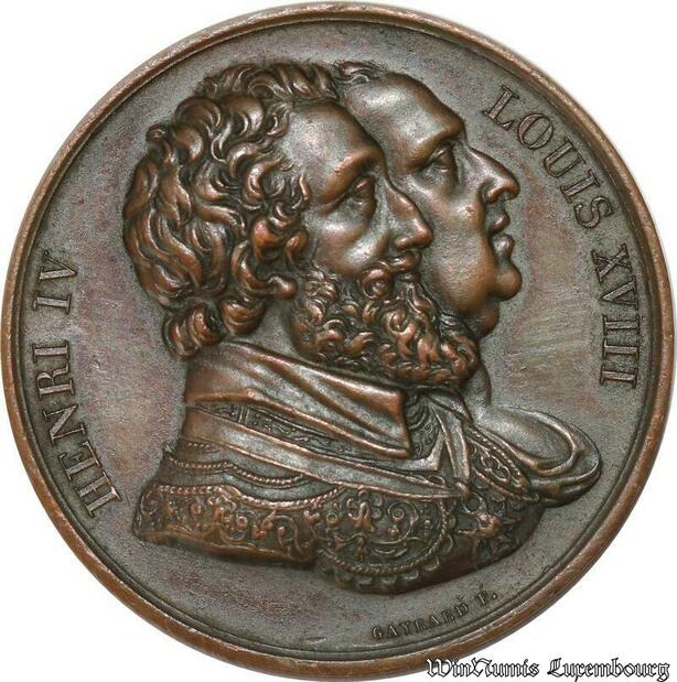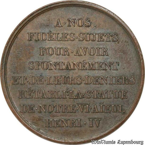 S8757 France Médaille Henri IV Louis XVIII REtablissement statue Gayrard