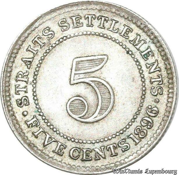 S8801 UK Rare 5 Cents Settlements Victoria 1896 Argent Silver UNC ! ->Make offer