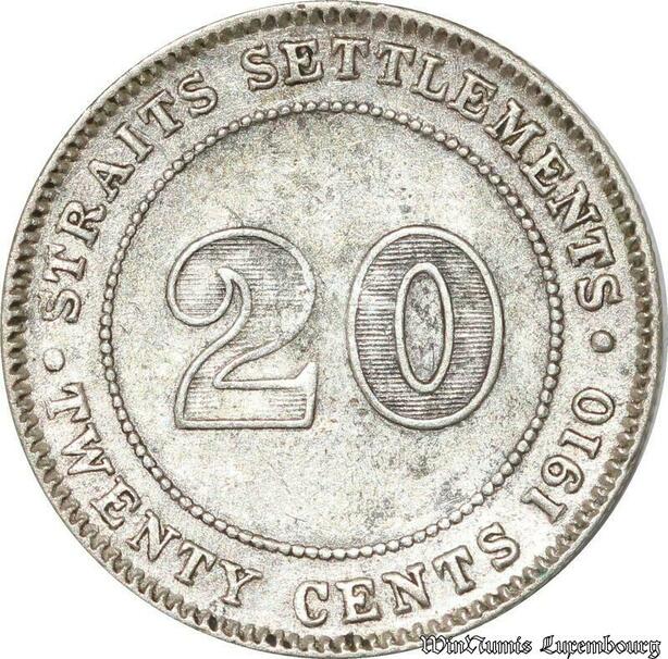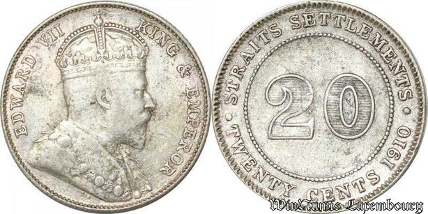 S8806 UK 20 Cents Settlements Edouard VII 1910 Argent Silver ->Make offer