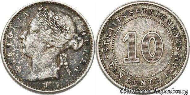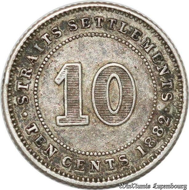 S8809 Rare UK 10 Cents Settlements Victoria 1882 H Argent Silver ->Make offer