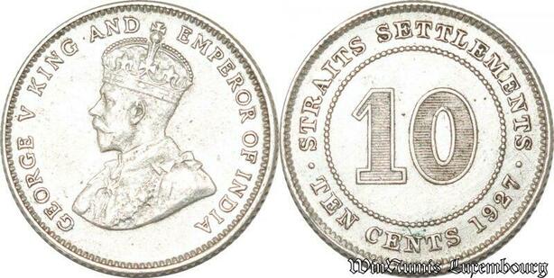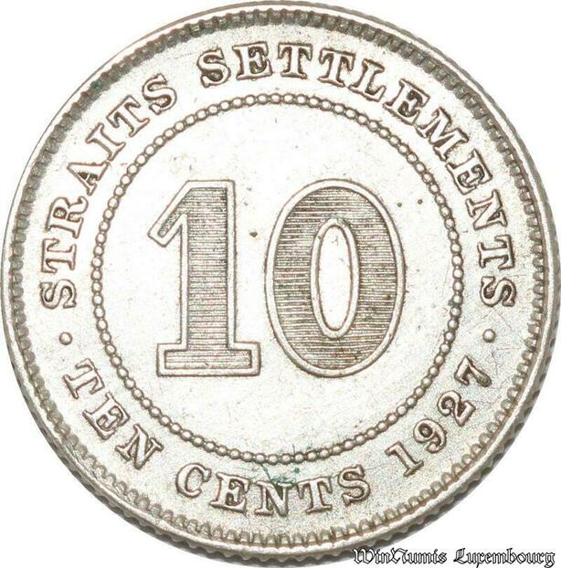 S8816 UK 10 Cents Settlements George V 1927 Argent Silver AU->Make offer