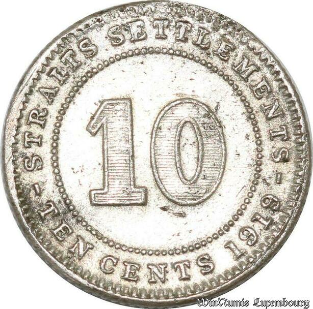 S8818 UK 10 Cents Settlements George V 1919 Argent Silver ->Make offer